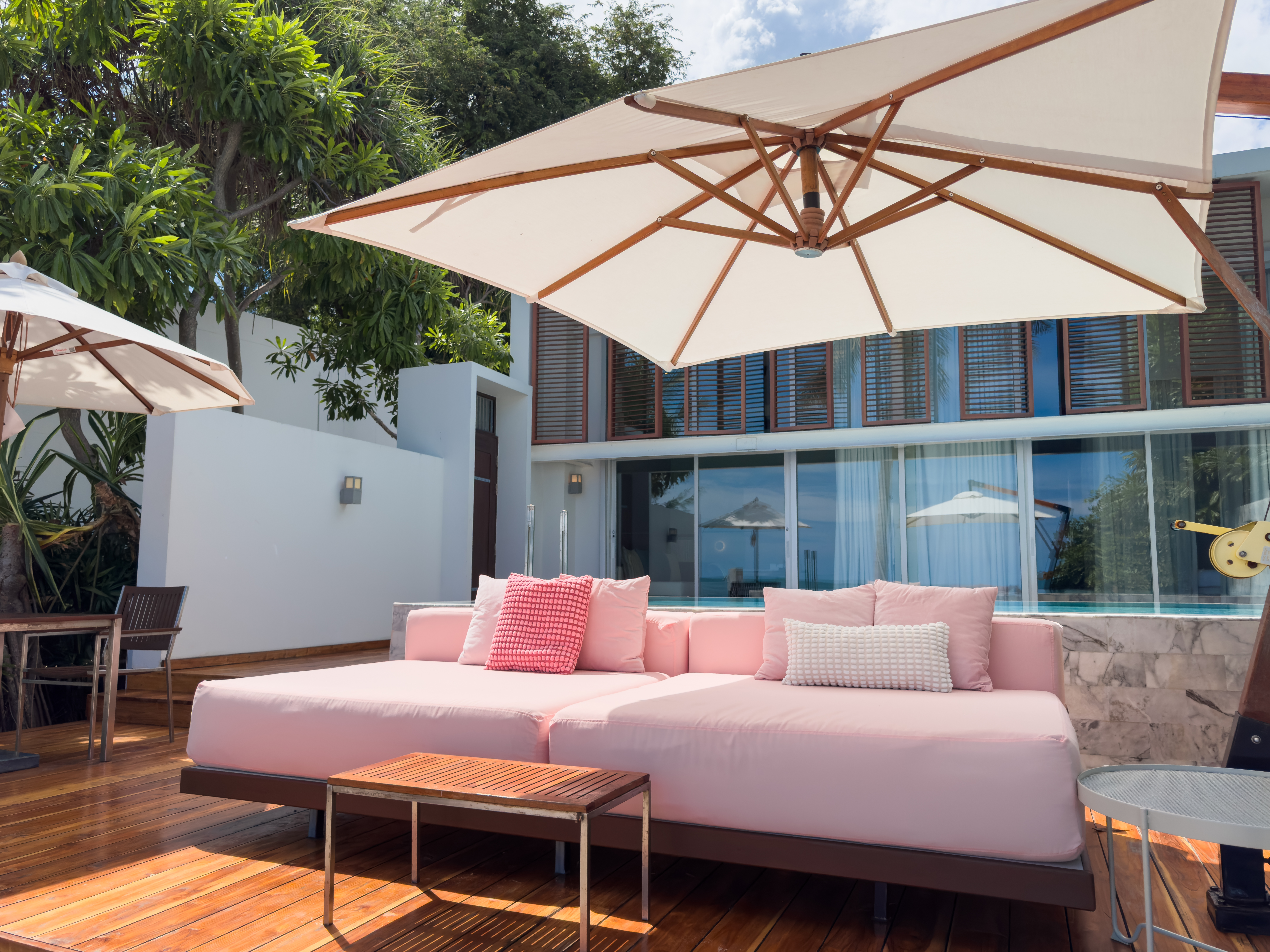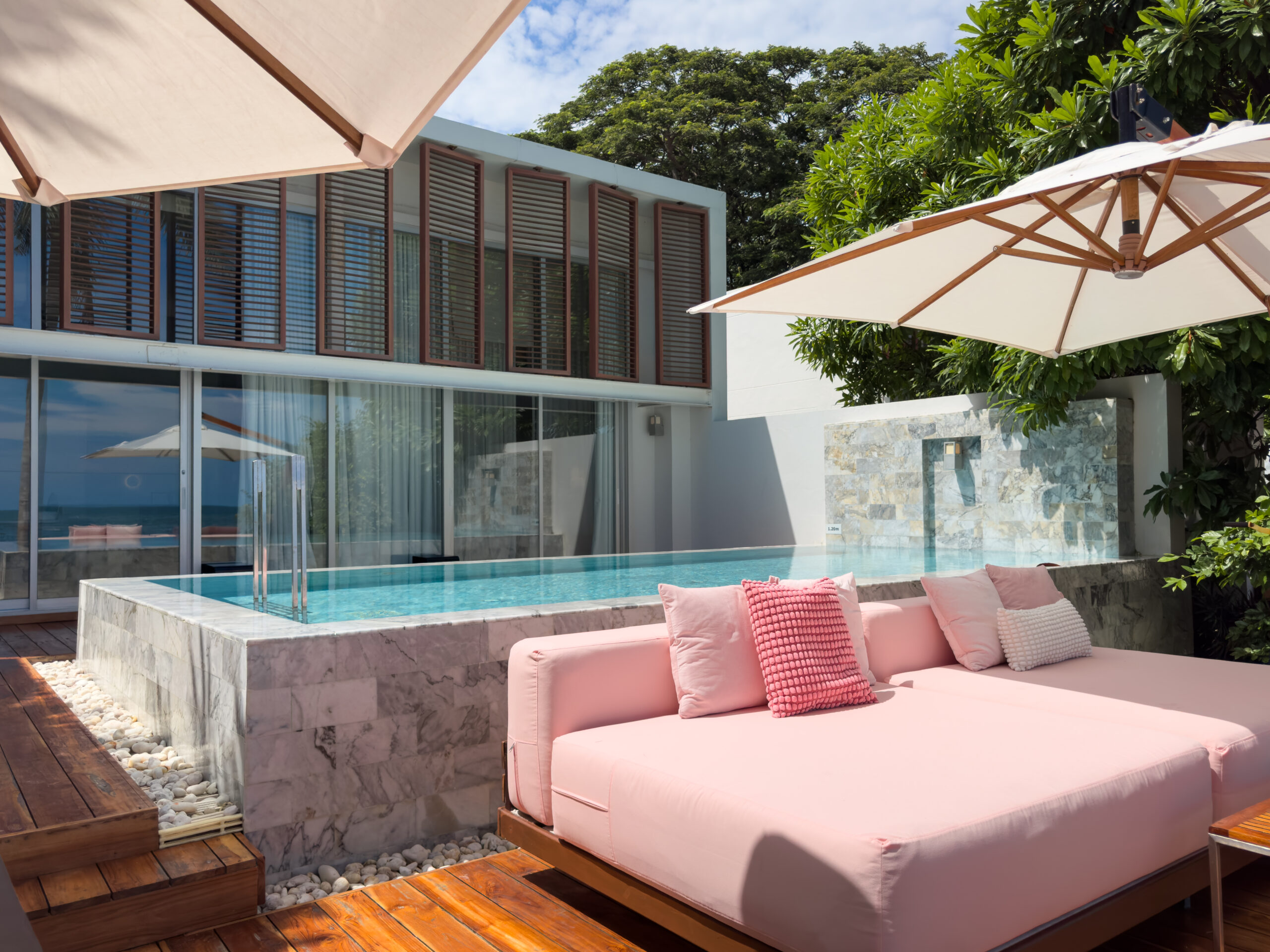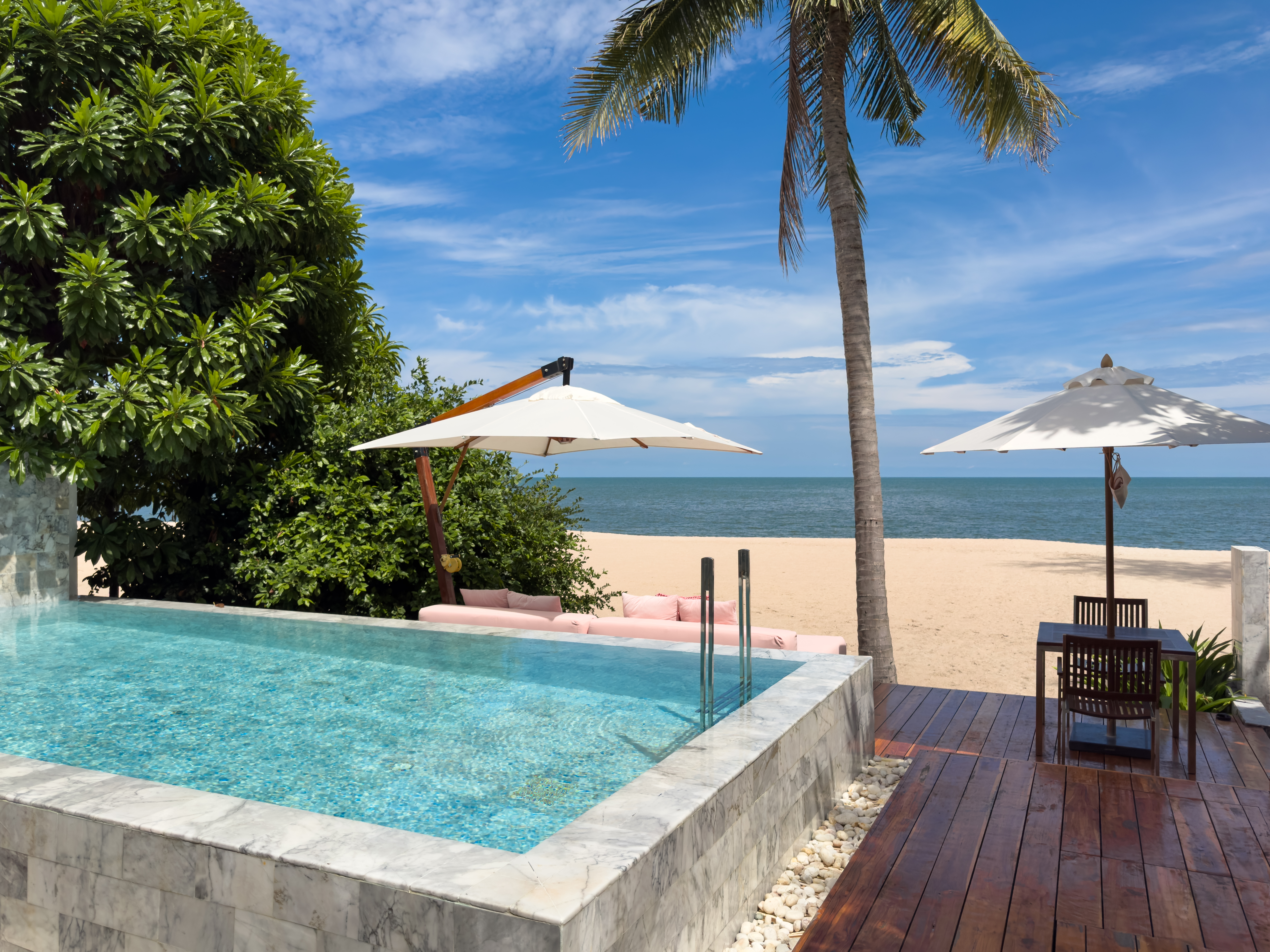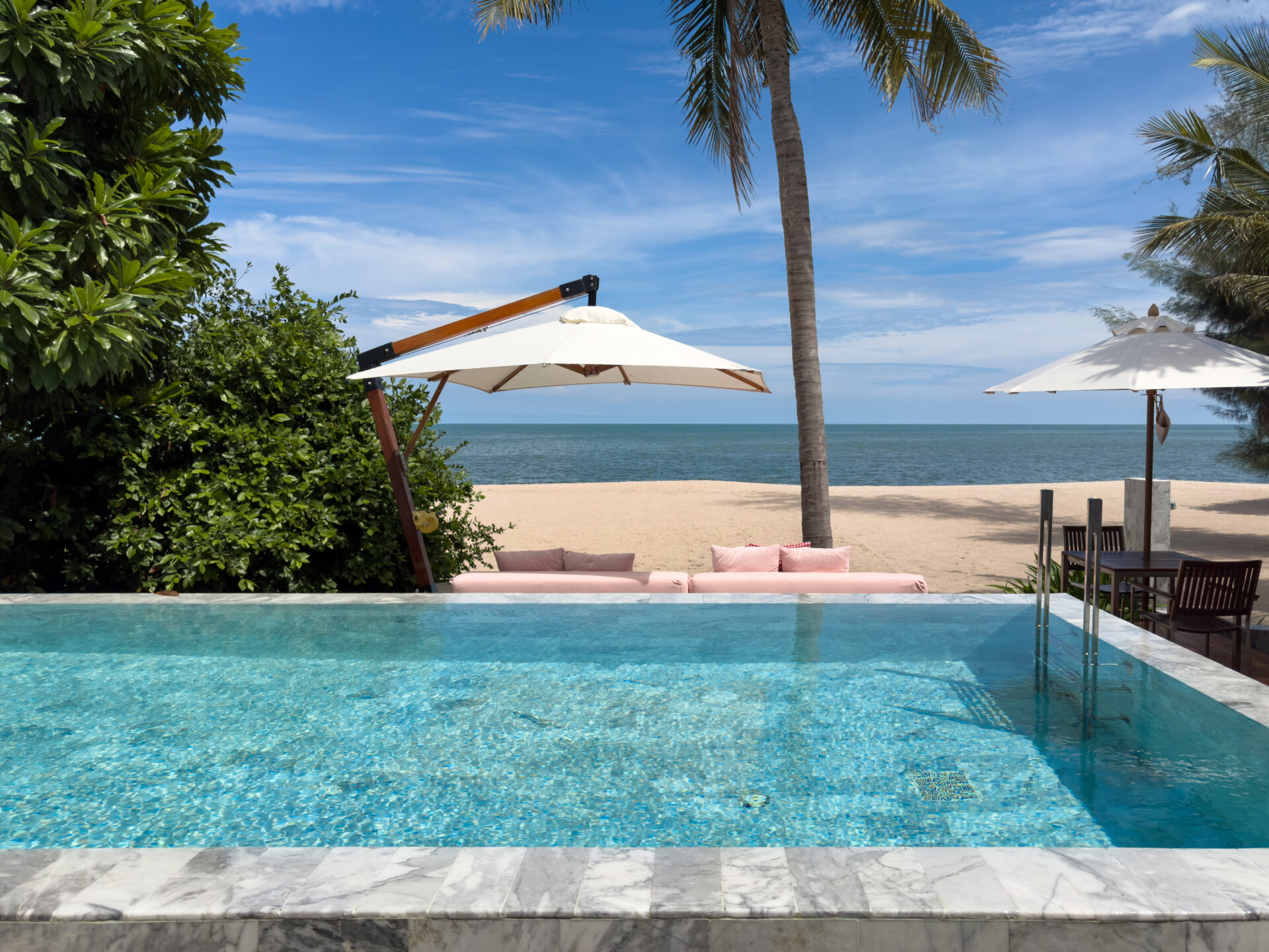 Feel the symphony of the sea from your private beachfront retreat. Wake up to stunning sunrise views and the gentle sound of waves. This villa features an outdoor bathtub, a private infinity pool that merges with the ocean, and direct access to the pristine white sand beach—an idyllic paradise for relaxation.