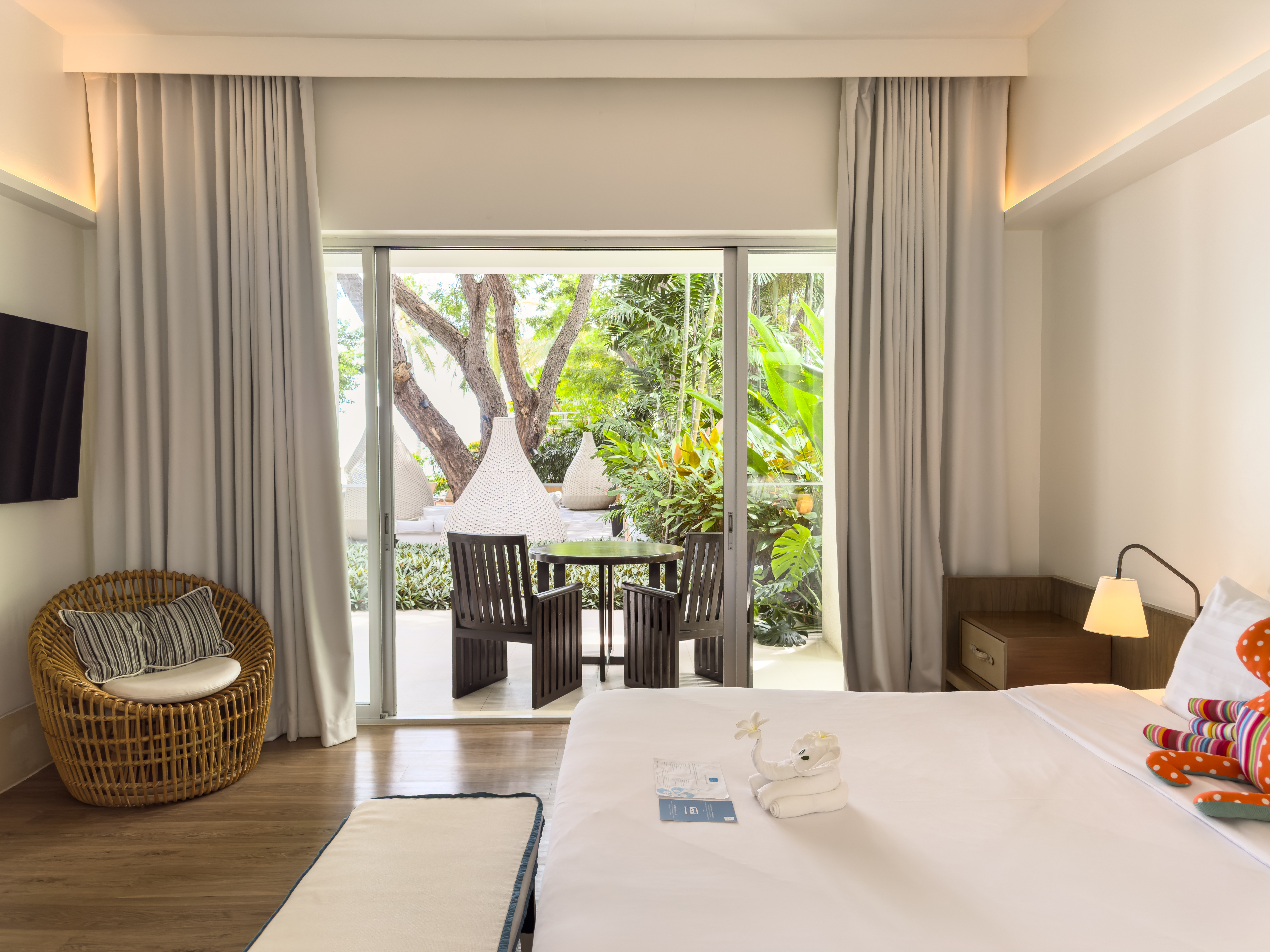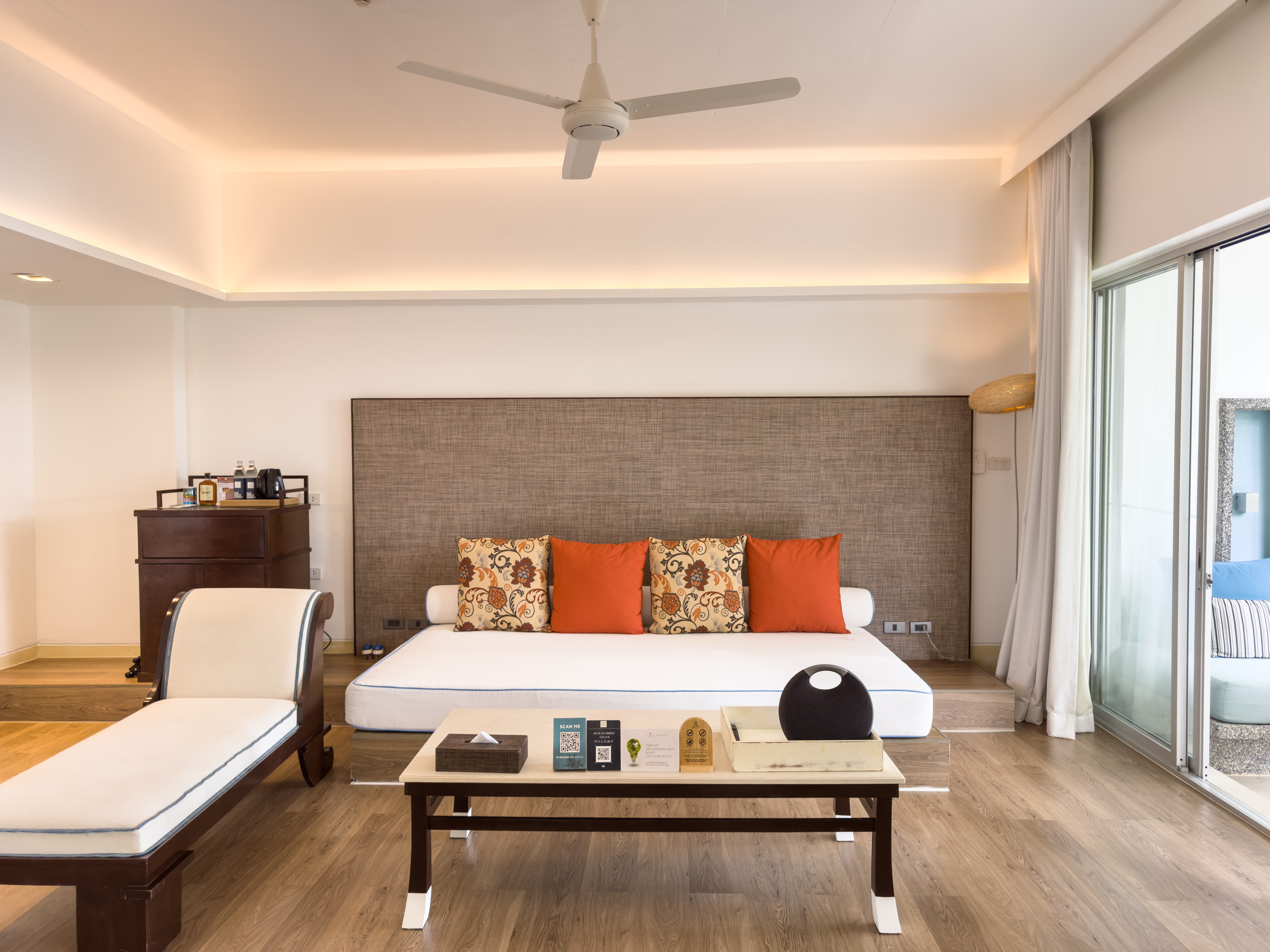 A refined blend of productivity and leisure, this suite is tailored for professionals who seek a business-friendly yet relaxing retreat. Featuring a dedicated workspace, a stylishly appointed living area with a plush sofa and entertainment system, and a private balcony with stunning sea views, it seamlessly balances work and relaxation.